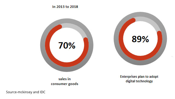 A research done by Mckinsey and IDC says that the percentage of adoption for digital transformation is increasing each passing year and projected to be adopted by at least 89% of the CPG companies.